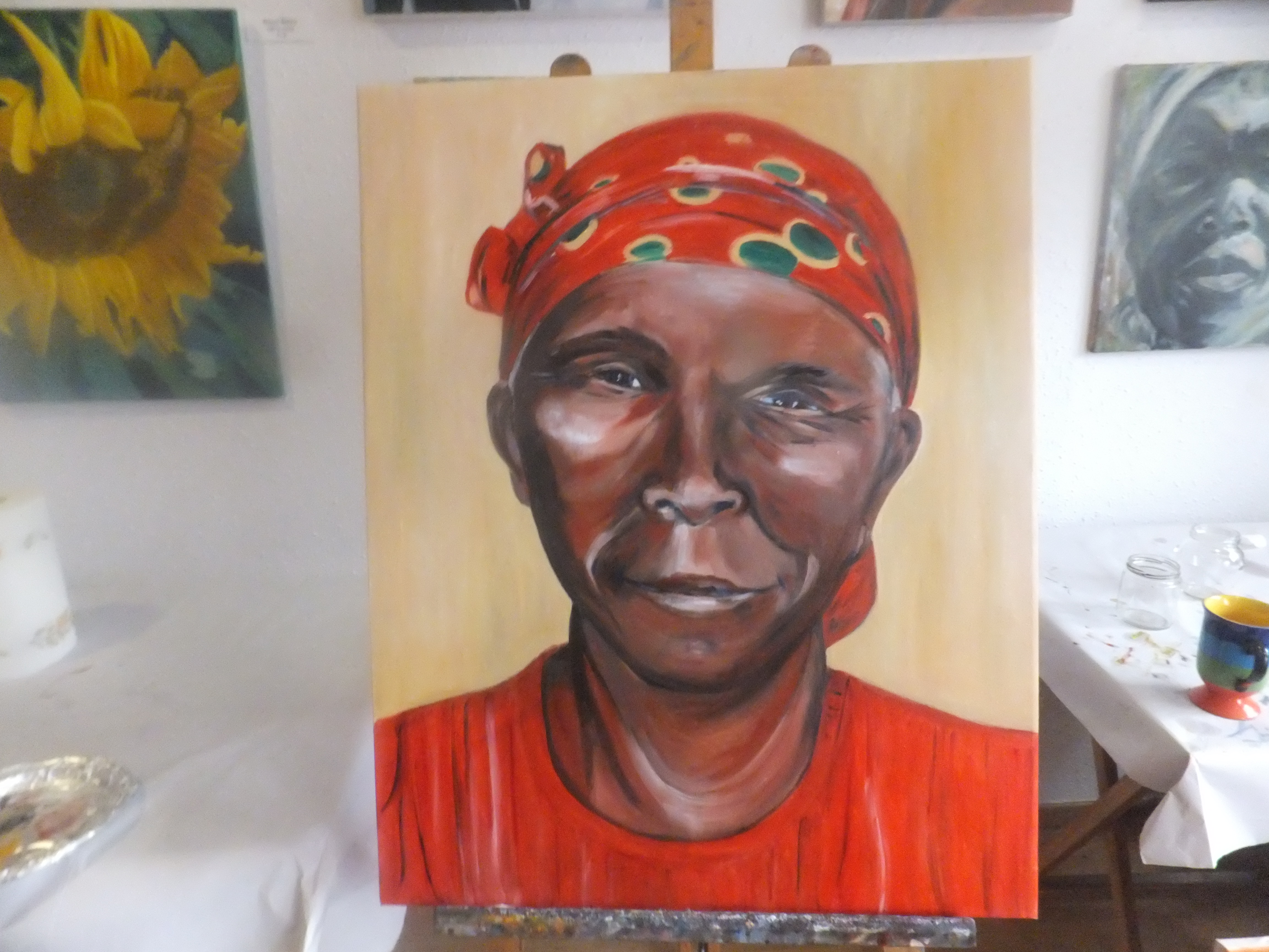 Hi All, It’s amazing what a couple of days of sunshine can do. The blossom on the almond trees which had been very reluctant to appear has burst into life, and it makes so much difference to be able to sit on the patio for breakfast. 23 degrees earlier today, but unfortunately it is now down to about 14 with three days rain forecast. A pity, because Ann is still not well and is in dire need of some persistent sunshine. She finished a really good portrait of a Mozambiquan lady we met at Nkwichi this week, and is going to Pilates tonight. As usual she is making light of things but still has a horrible cough and it is about time she started to get better. We are both counting the days until we move, Ann because she wants a decent kitchen and me because I want to get some veggies planted before the weather gets too hot.